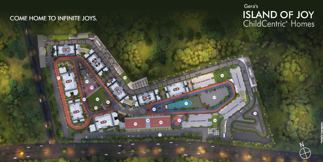 Gera Developments proudly presents Island of Joy at East Kharadi^, a landmark addition to our esteemed ChildCentric® Homes portfolio. This expansive 12.5-acre development features three exclusive clubhouses spanning over 40,000 square feet and over 4 acres of lush open spaces.